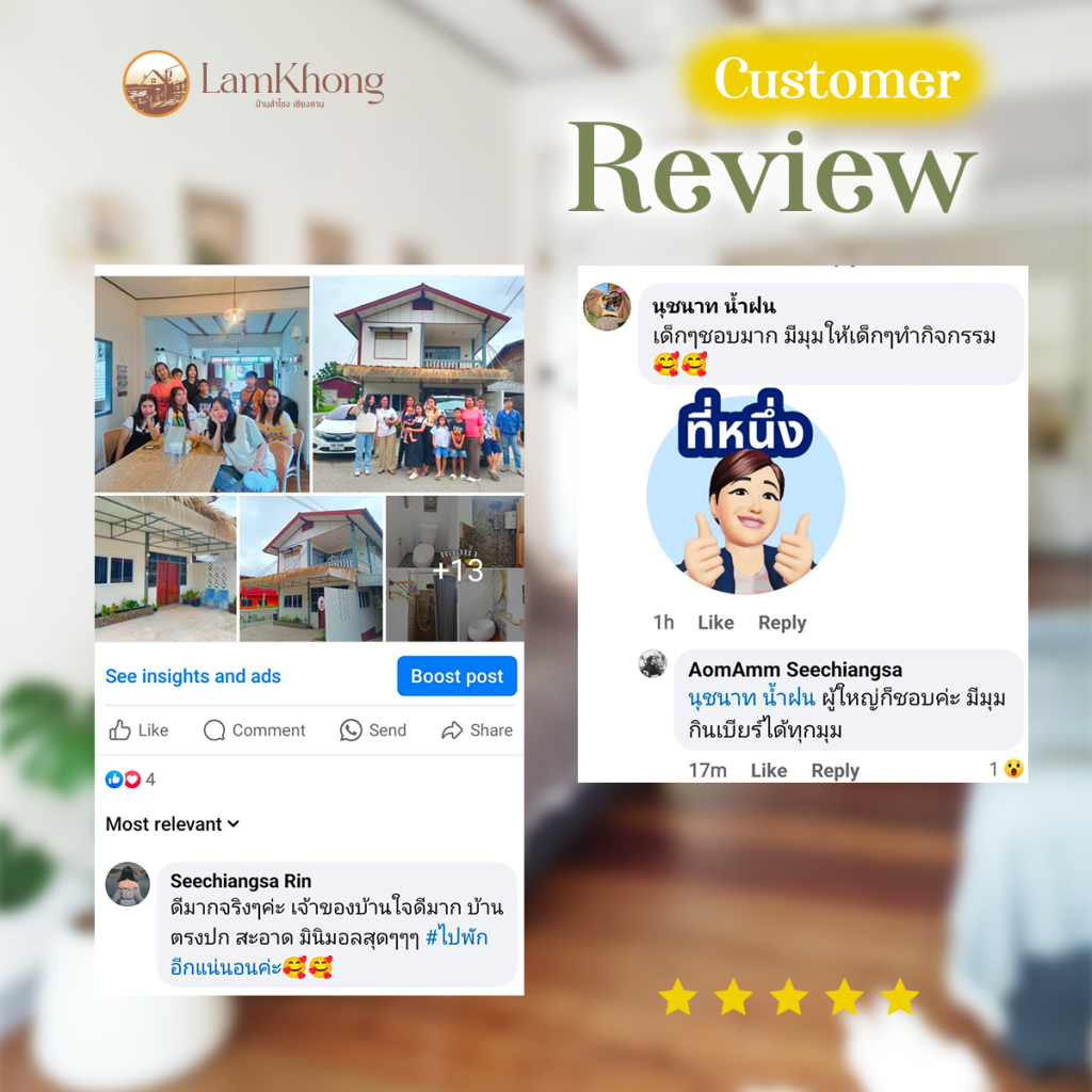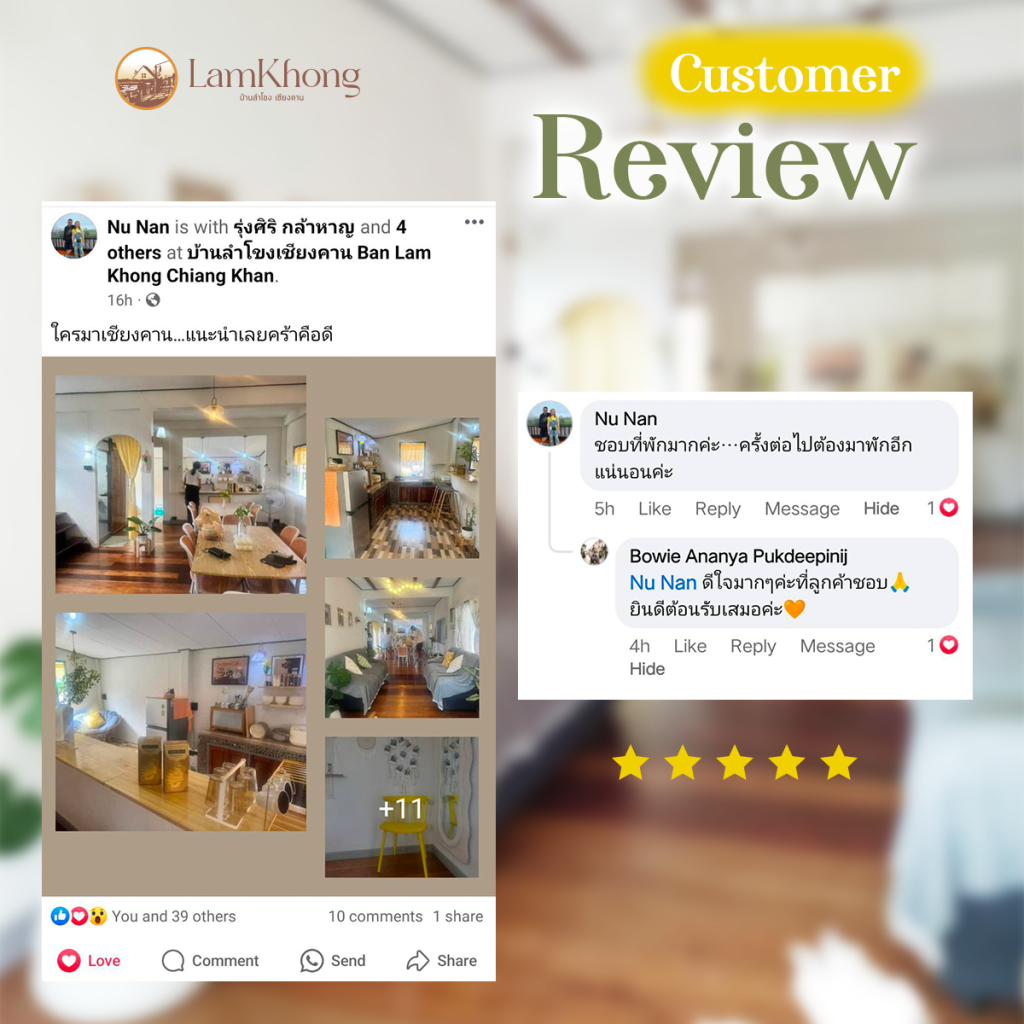 พักผ่อนสุดชิล กับแก๊งเพื่อน หรือ ครอบครัวใหญ่ ที่บ้านลำโขงเชียงคาน(สาขา2) บ้านพักใส่ใจทุกรายละเอียด ตกแต่งคลาสสิค สวยทุกมุม ถ่ายรูปได้ทั่ว เก็บภาพประทับใจของครอบครัวหรือชาวแก๊งค์